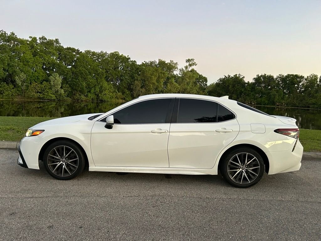 Recent Arrival! Super White 2021 Toyota Camry SE FWD 8-Speed Automatic 2.5L I4 DOHC 16V Black Cloth. http://www.realdeal.com/