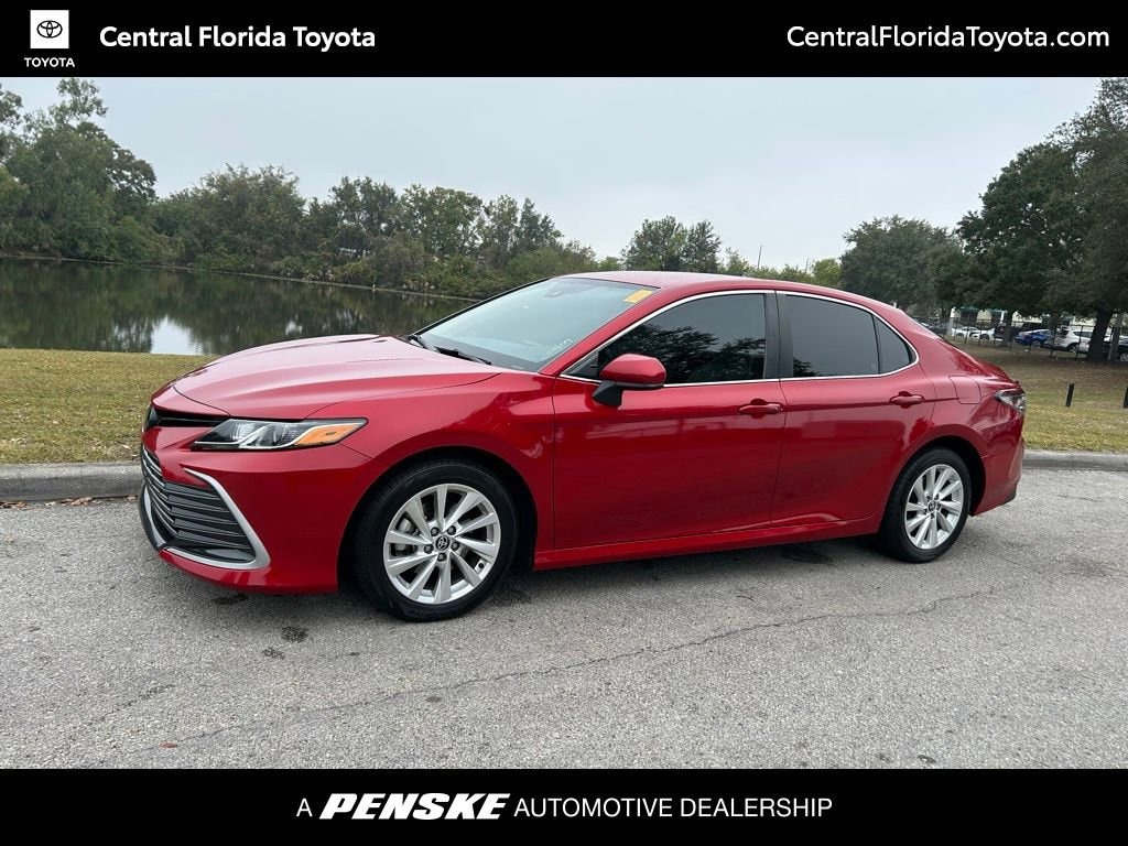 Recent Arrival! Red 2023 Toyota Camry LE FWD 8-Speed Automatic 2.5L I4 DOHC 16V Macadamia Cloth. http://www.realdeal.com/