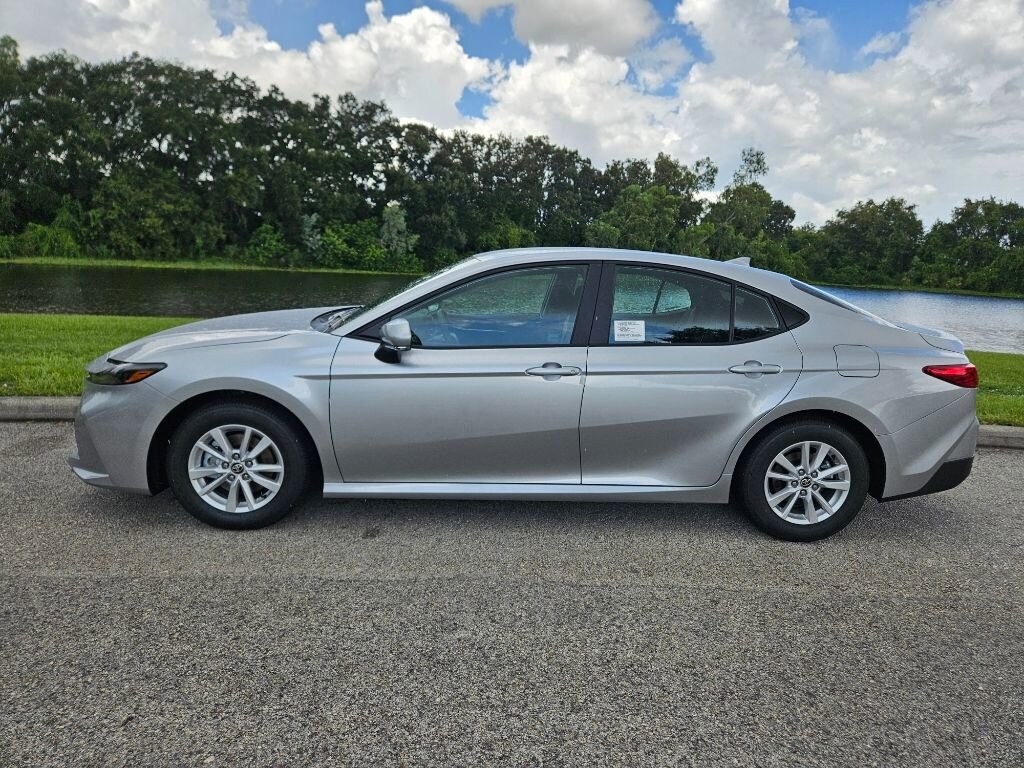 Silver 2025 Toyota Camry LE FWD eCVT 2.5L 4-Cylinder 16V DOHC 2.5L 4-Cylinder 16V DOHC, Blk Fabric Cloth. http://www.realdeal.com/